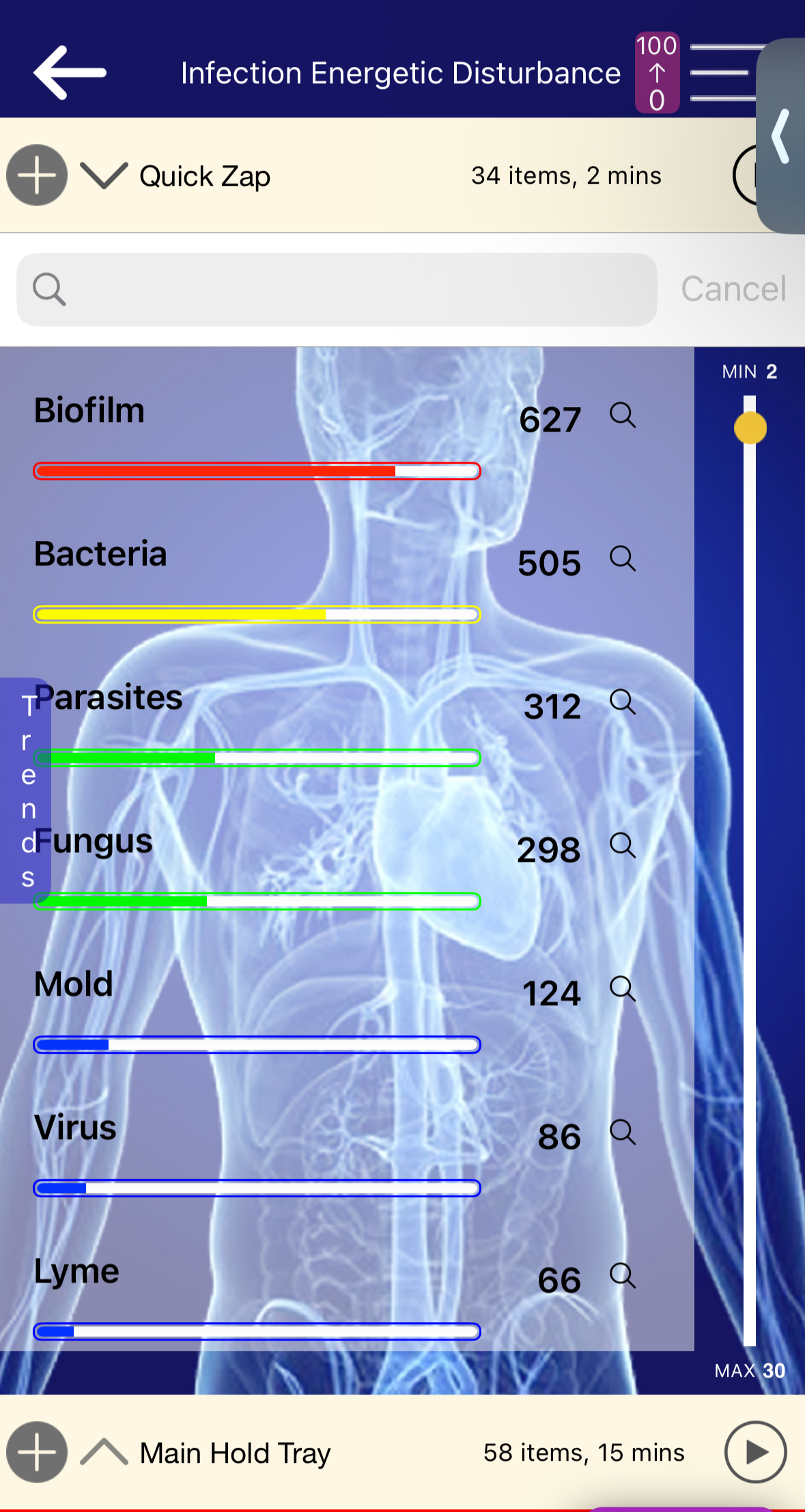 These are examples of scan results, showing patterns of stress and areas where your body may need support.